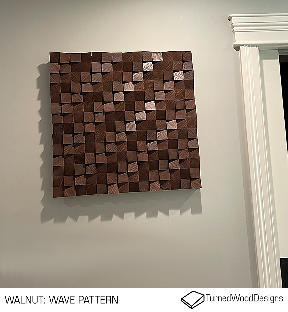 2' X 2' WAll art shown in walnut with our wave pattern and oiled finish