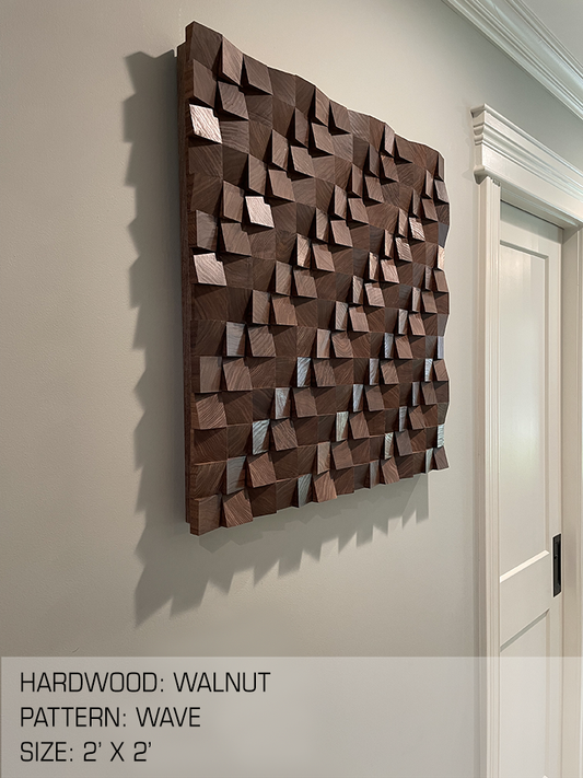 2' X 2' WAll art shown in walnut with our wave pattern and oiled finish